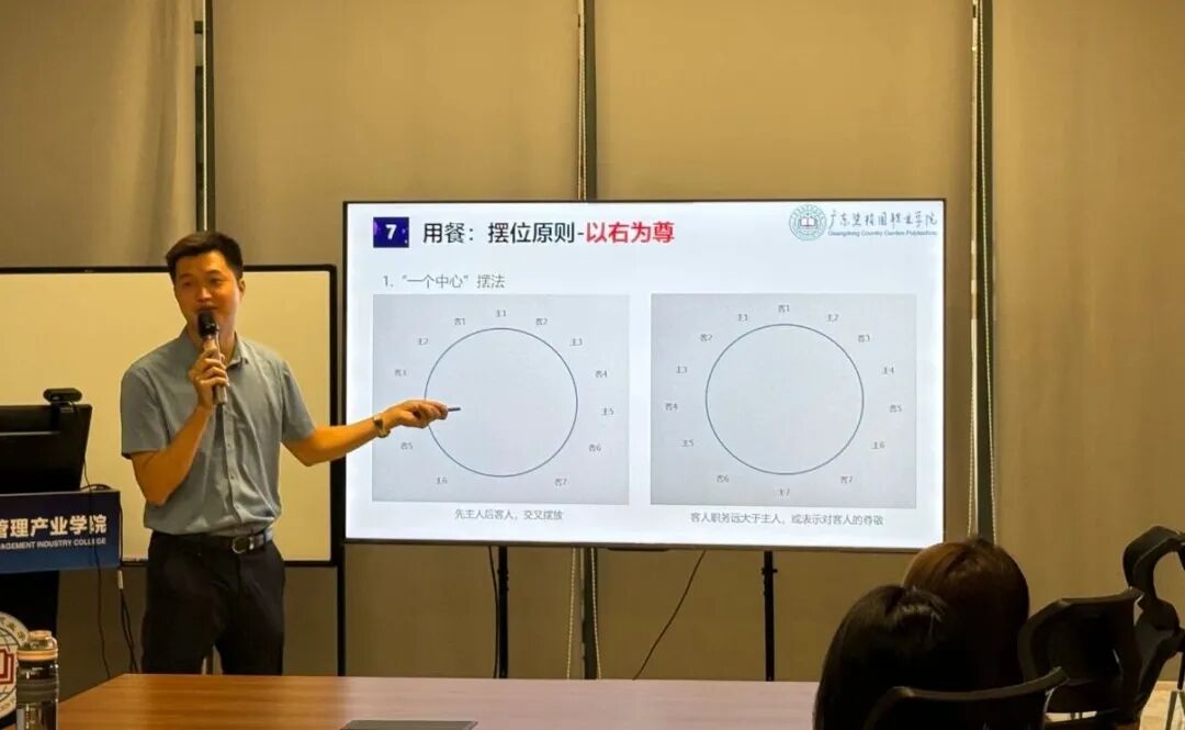 为夯实产业学院学生职业通识能力,提升学生现代服务与礼仪沟通软实力,10月10日,碧桂园智慧管理产业学院(下称:产业学院)举办“第二届现代服务与礼仪沟通专项培训班”,吸引了20多名来自不同专业的学生报名。本次培训班由产业学院管委会综合办公室主任 朱家俊主讲,朱老师凭借此前在集团筹超千场商务会议、政企交流、行业峰会、来访接待的实战经验,以“场景化教学+标准化实操”为核心,为同学们带来一场兼具实用性与前瞻性的职场会务服务与接待礼仪课程,助力学生解锁职场“软实力”。