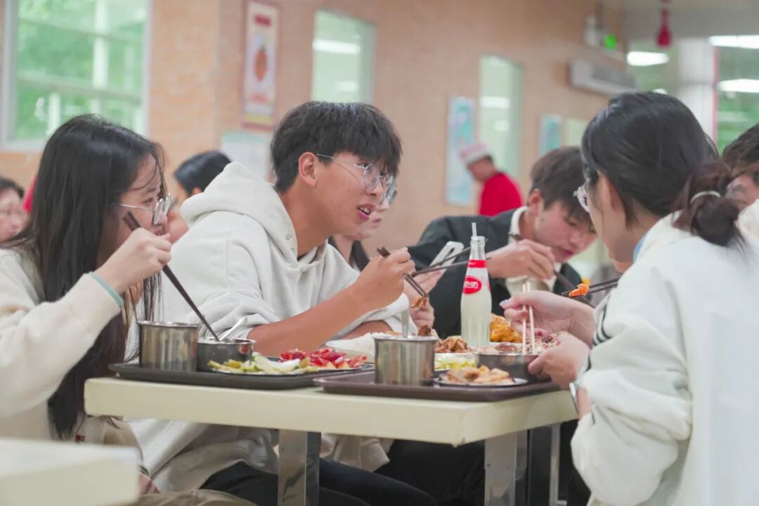 中午时分,碧职学子和暨大同学共进午餐,延续友谊时光。他们一边品尝校园美食,一边围绕学习、升学、实习、就业等话题继续交流,不少同学还互相加了微信,约定保持联系,共同进步。