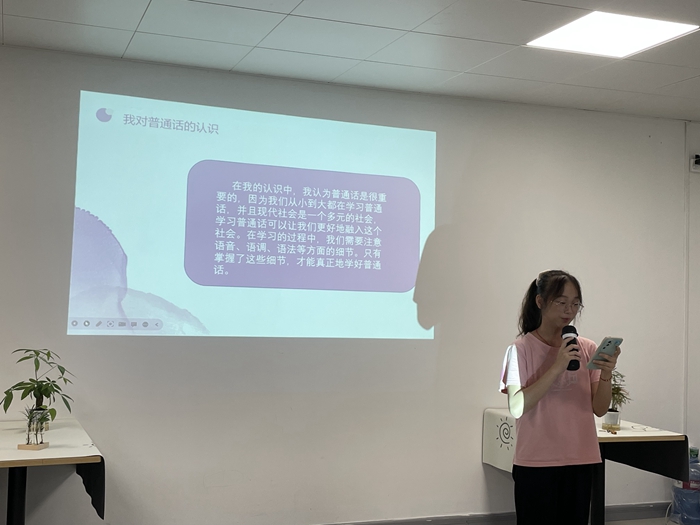 9月15日下午,第二十七期“践行文化新风尚,一起说好普通话”为主题的仲明微讲堂完美收官。这次微讲堂诚挚邀请机器人技术系冯彩美老师作为主讲。冯老师从“什么是普通话”导入,通过“为什么要推广普通话”的原因,一步步引导学生明白“说好普通话、推广普通话”的意义以及如何提高普通话技巧。