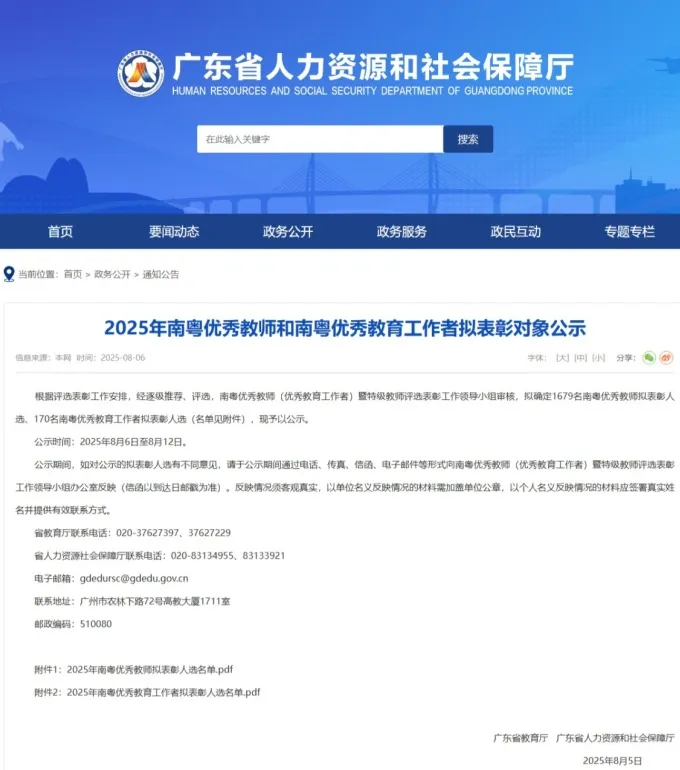 据悉,评选表彰南粤优秀教师、南粤优秀教育工作者,旨在全社会弘扬尊师重教的良好风尚,进一步激励广大教师和教育工作者献身教育事业,吸引优秀人才投身教育事业,为加快建设教育强省、推动广东教育高质量发展作出更大贡献。